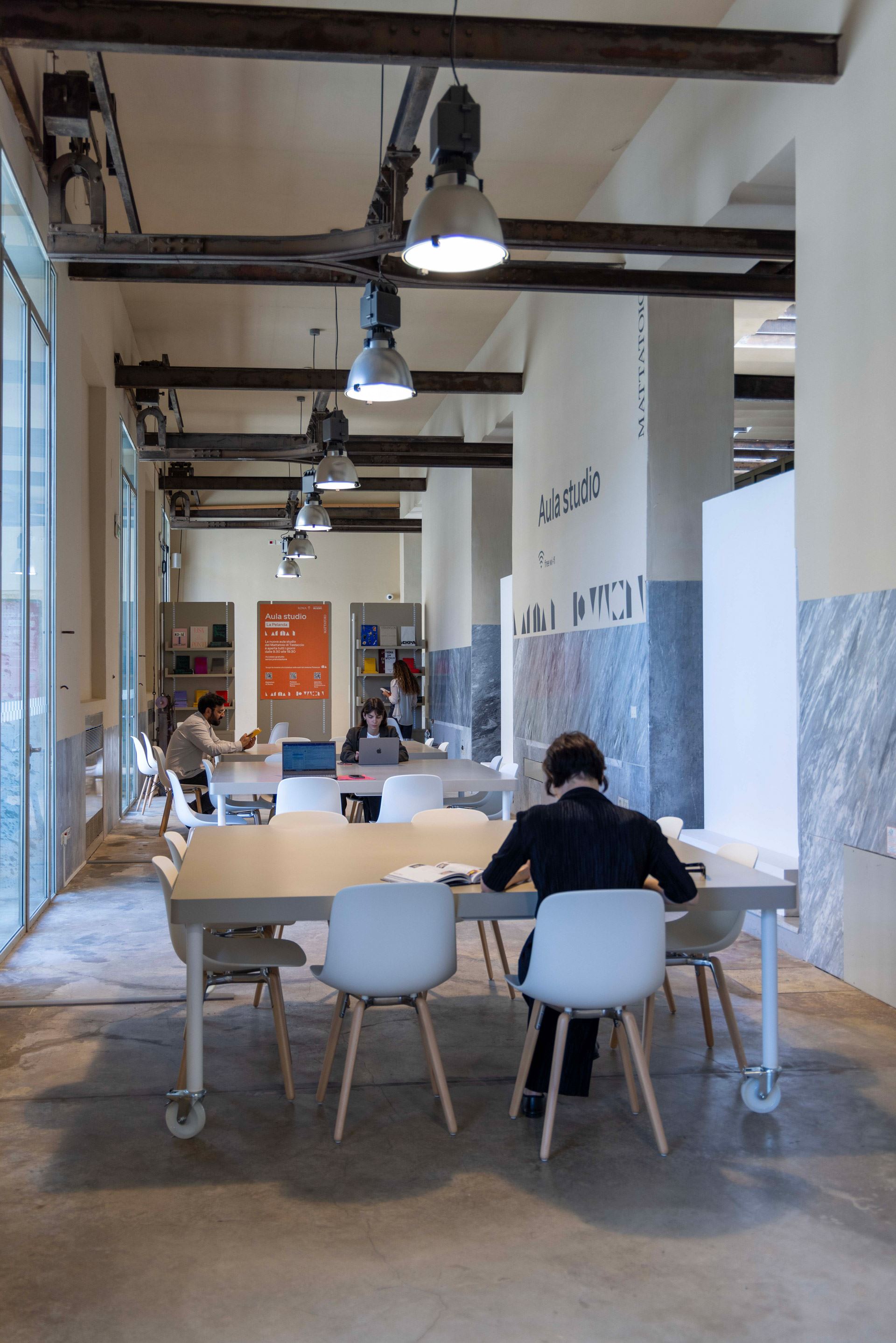 L’allestimento della nuova aula studio – che costituisce una sede complementare alla storica biblioteca di quartiere – è stato curato dall’Azienda Speciale Palaexpo, che ha in gestione La Pelanda per conto di Roma Capitale.